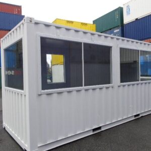 Container professionals can install AC/Heating, lighting, outlets, toilets, sinks, and showers, as well. We can also customize your office container with windows, office doors, and even sliding glass doors. Office containers made by us are ideal for schools, remote offices, guard shacks, events, construction sites, additional office space, and mining operations. We can help you find the right office container for sale for your business and meet all your shipping needs.