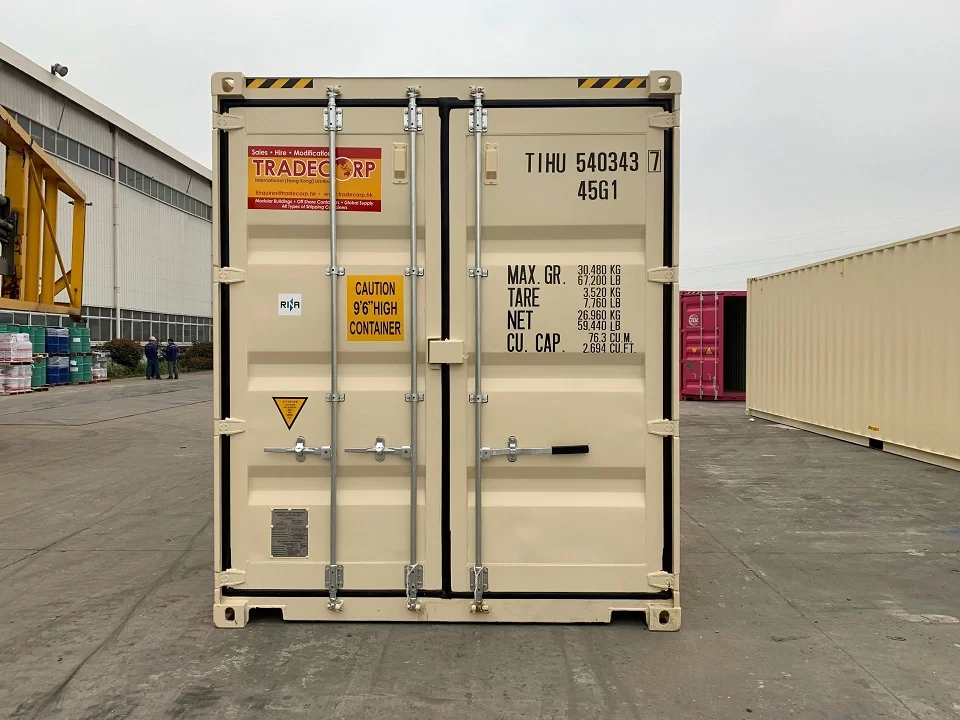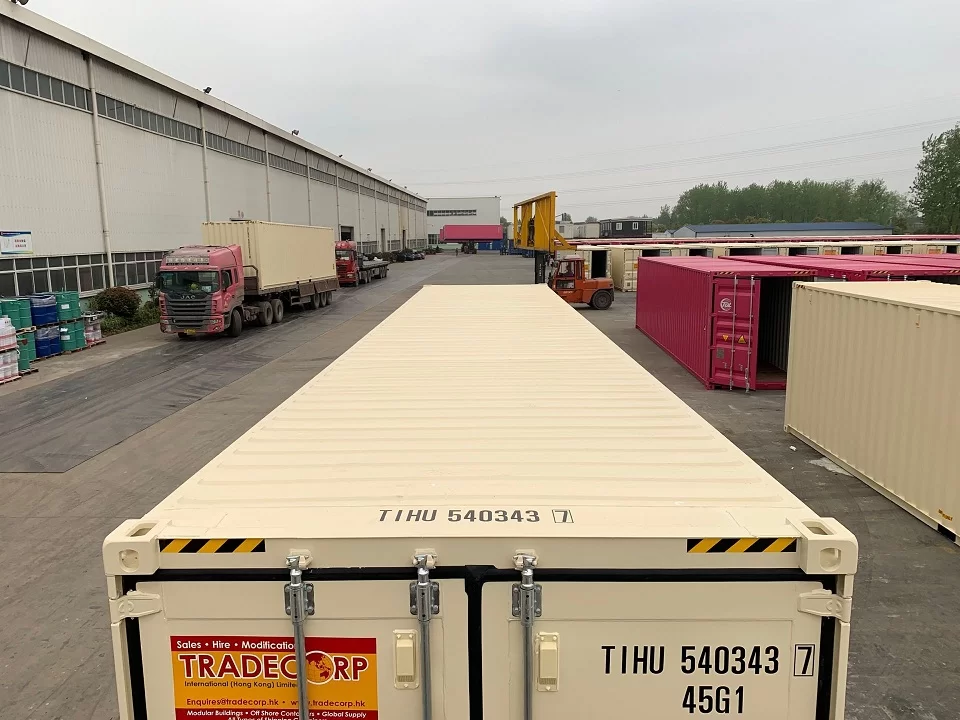 Tradecorp’s 40ft high cube shipping container has a special height that sets it apart from standard containers. At 9.6 feet tall, it is 1 foot taller than a standard shipping container. Like other 40ft containers, it is 8 feet wide and 40 feet long.